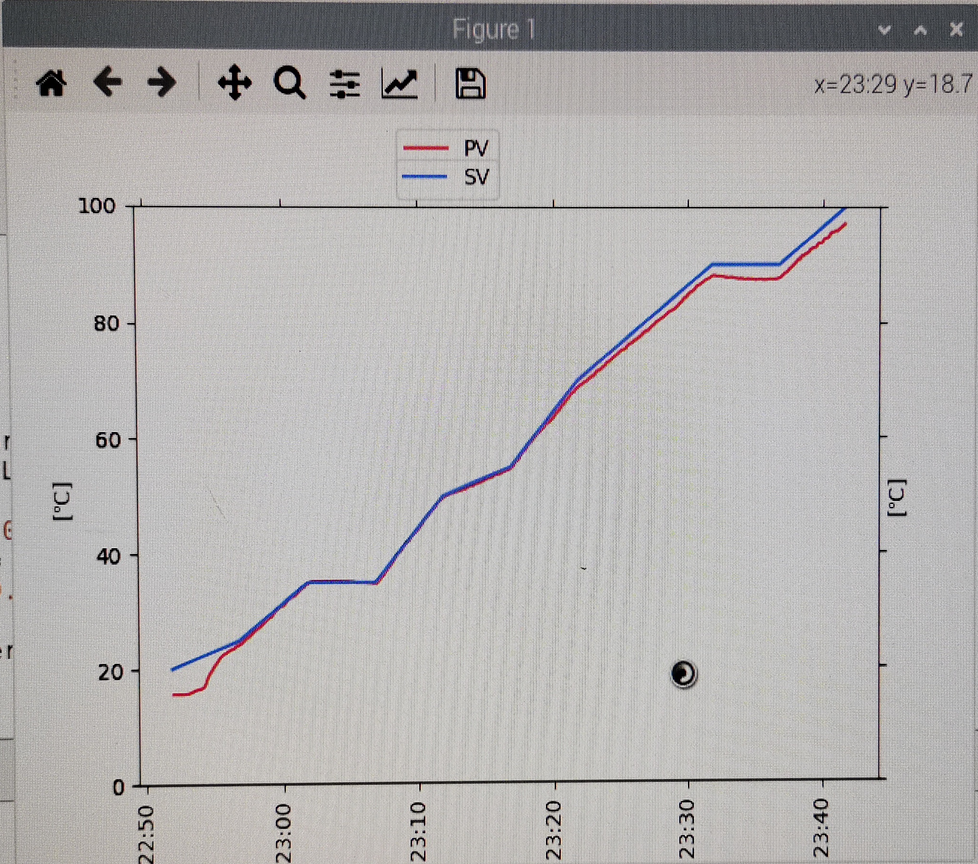 グラフにSVがプロットされ、スタートボタンを押すことで温調が開始します