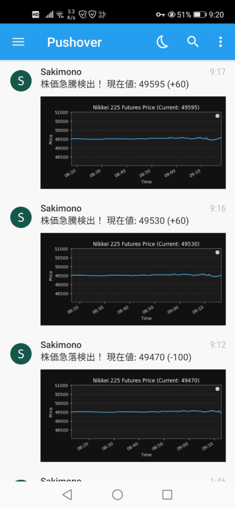 pushover.send("株価急騰!", img_path="graph.png")めちゃ簡単ですね