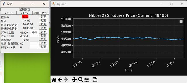 昨日は1日かけて日経先物の値動き監視ツールを作ってました