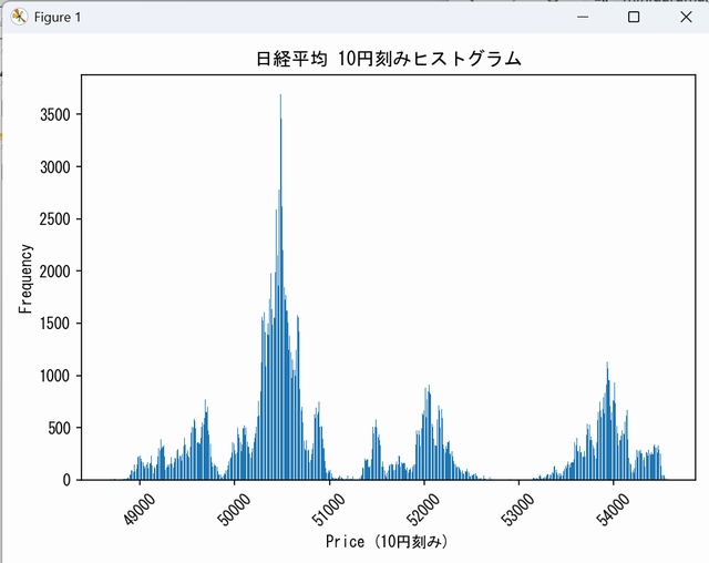 そこで、記録していた10秒刻みの株価データをヒストグラム化してみることにしました。